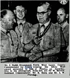 MR. J. DODDS DRUMMOND, headmaster of the Friends’ School, Lancaster, the North West Lancashire County Commissioner for Scouts, received the Silver Wolf, the highest award of the Scout Movement, at the annual meeting of the County Association, in Preston on Saturday. The presentation was made by Mr George Green, County Commissioner for East Cheshire, on behalf of the Chief Scout, Major Sir Charles Fitzroy McLean.