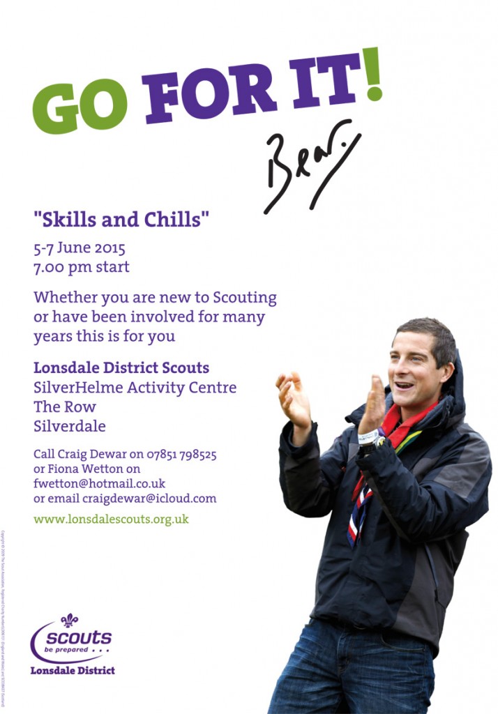 To: All Adult Members in Lonsdale District Scouts 01 May 2015 Dear All, Re: ‘Skills and Chills’, Silverhelme Scout Activity Centre 5-7th June I am writing to invite you to an all-adult event: skills and chills, focussed on sharing the best practice from the across the District, sharing programme ideas […]