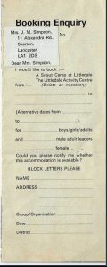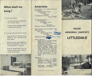 Mr. Helme, affectionately known as L.P., bequeathed to the Local Association, a sum to be spent on the establishment of a camp site for our District. Many years have been spent in finding a suitable site, but until last month nothing was found which was considered to be fitting to his memory. The ‘spirit’ of L.P. must always be associated with Littledale and that is why everyone who had the priviledge (sic) of knowing him must be more than delighted with the present development.”