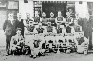 Team -Standing: H. Burrow, George Addison, T. Makinson, Dick Dymock, Bob Wilkinson, M. Nixon, Tommy Fielding, Bert Greenall, E. Sharples, Bob Jones (Secretary);