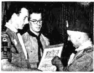 ONE of the highest awards in Scouting – the Queen’s Scout Badge – was presented to 17-year-old John R. Hodson of 6 Needham Avenue Morecambe, on Friday night during a ceremony at St. Mary’s School, headquarters of the 13th Morecambe & Heysham Scout Group, of which John has been a member since he was a Wolf Cub. The badge, together with a certificate personally signed by the Queen, was presented to him by Mr. M. Melling, District Commissioner. John’s Scoutmaster is Mr. F. H. Middlebrook.